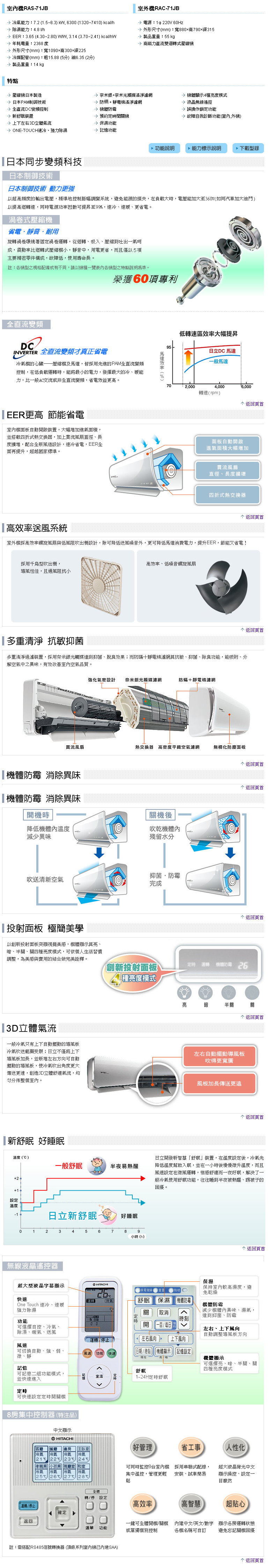 日立 HITACHI 一對一變頻專冷頂級系列 RAS-71JB/RAC-71JB