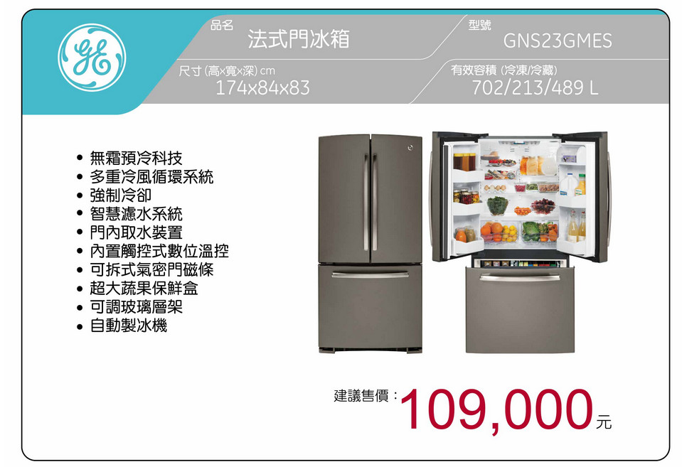 奇異 GE 702L 法式三門冰箱GNS23GMES