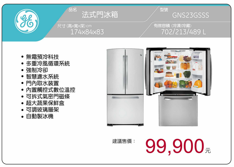 奇異 GE 702L 法式三門冰箱GNS23GGWW