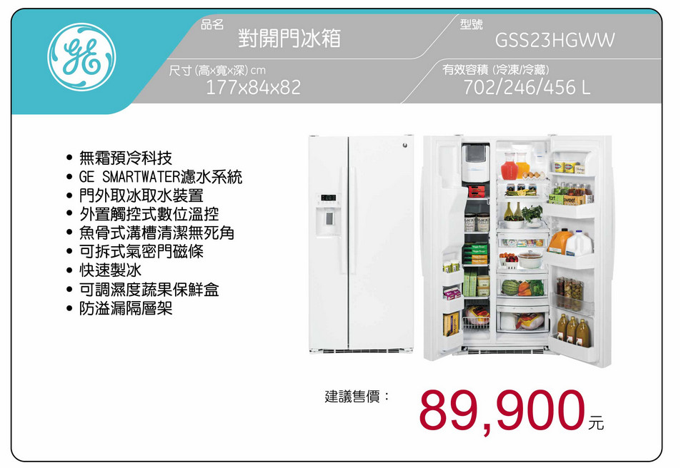 奇異 GE 702L 法式三門冰箱GNS23GGWW