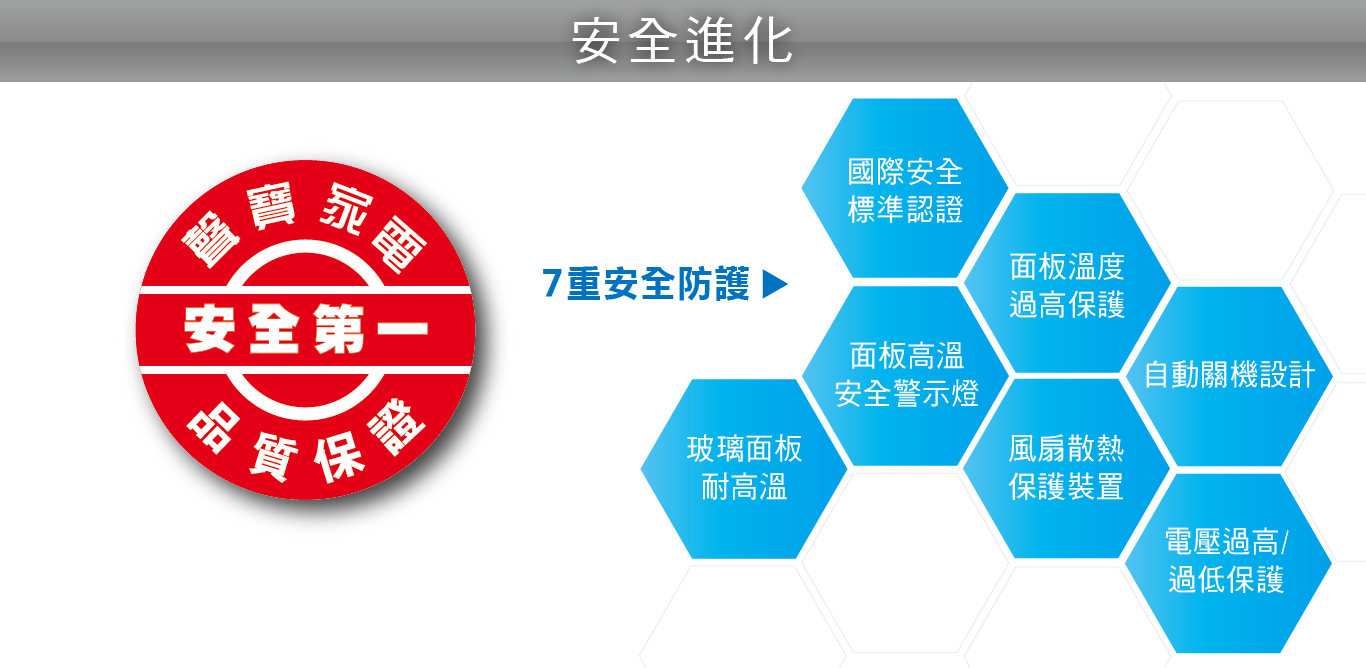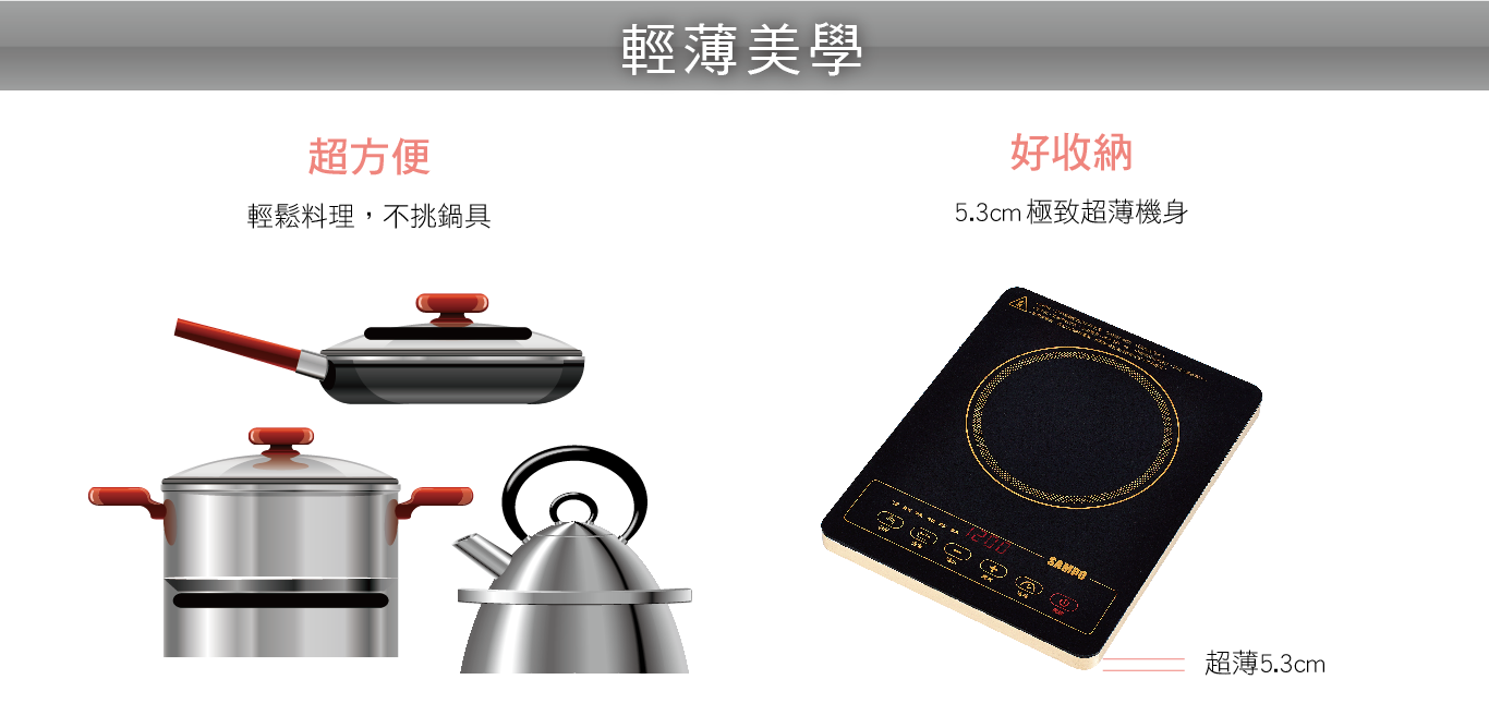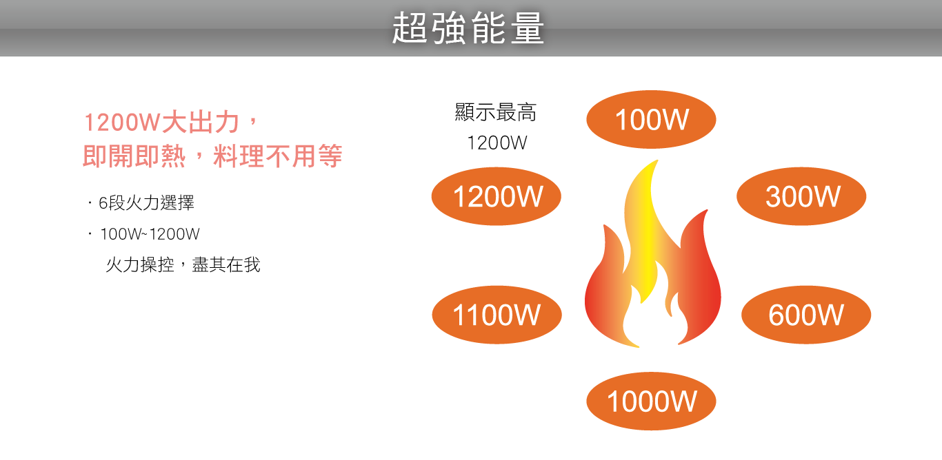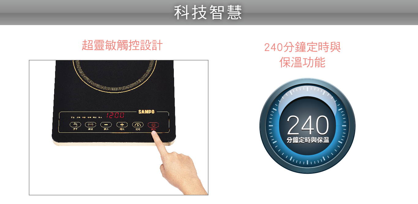 鎳鉻絲發熱結構,加熱均勻,不挑鍋具 輕觸控式微晶面板,簡便操作、清理容易 輕薄機身,收納方便 智慧指滑火力控制(六段火力) 6組烹調模式選擇 火鍋、燒烤、慢燉、煲粥、煎炒、煮水 240分鐘定時功能集保溫功能 七重安全保護裝置