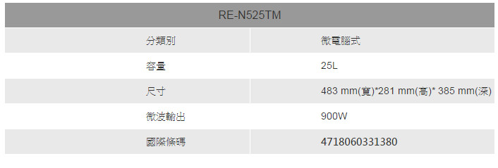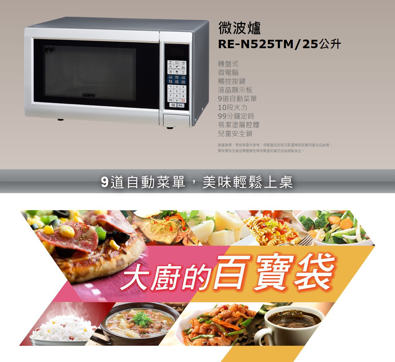 聲寶 SAMPO 25公升 900W微電腦微波爐 RE-N525TM