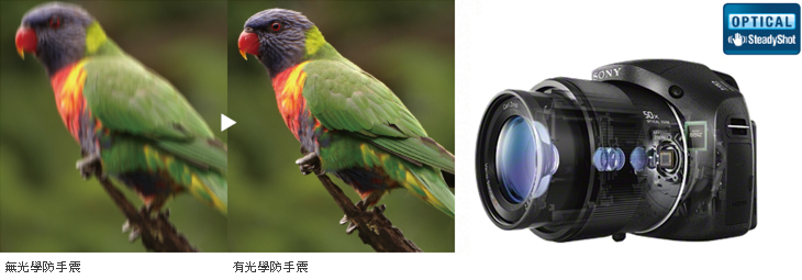 HX400V 搭載新一代的 Optical SteadyShot (光學防手震) 技術*,更加精準且可偵測並修正微小的手部移動,讓快門按下的瞬間捕捉更清楚、銳利的影像。對於容易出現在望遠拍攝,以及動畫錄影時發生的手震效果尤其明顯。 *包含軟體革新及防手震鏡頭群位置優化 |