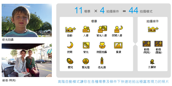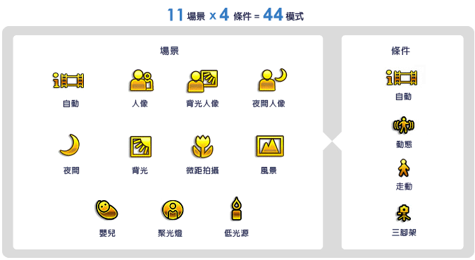 | 靜態影像拍攝 ( 44 種模式 ) |
