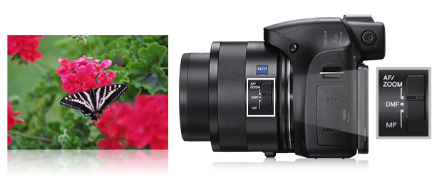 利用對焦轉環,輕鬆操控對焦與變焦 您只需操作鏡頭上的對焦環,並切換鏡頭側的對焦按鈕,就可以輕鬆運用變焦與對焦模式。舉例來說,微距拍攝時,只要調整到手動對焦,再搭配對焦環,就可以立刻放大畫面的某一部份約達 7 倍。手動對焦轉環讓您更精準地輕鬆掌控專業拍攝。 |