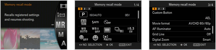 記憶喜好的拍攝參數, 讓您享受簡單拍攝 HX400V 的智慧記憶功能,可以記憶 3 組拍攝參數喜好設定(包含了白平衡、曝光補償、日期與格線顯示),讓您在需要時立即調出之前的設定,不需再經過繁瑣的設定動作。 |