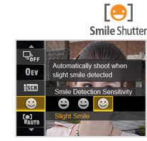 Sony 的微笑快門技術能捕捉最燦爛的微笑。一旦偵測到被拍攝者的笑容,此創新功能便會自動拍照,幫您留住所有歡樂的時刻。在大人或小孩優先模式中,您甚至可以調整微笑偵測的敏銳度,捕捉您想要的笑容。只需按下微笑快門鈕,即可輕鬆啟用此功能。 只要啟動 |