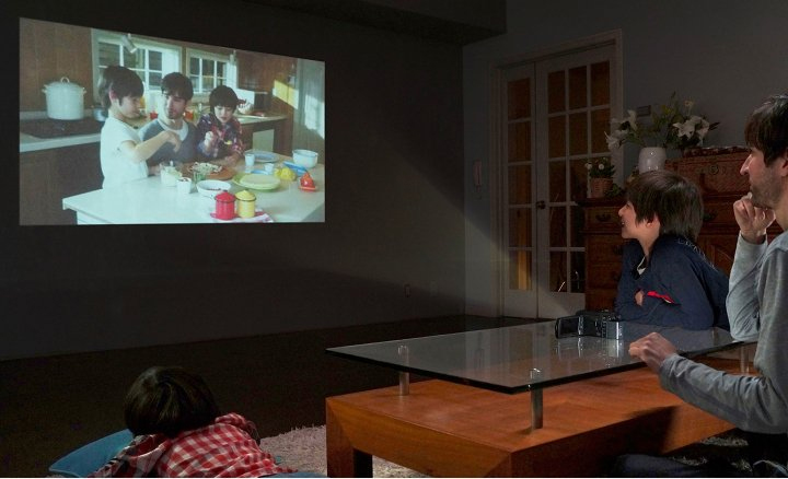 | 同一部裝置既可拍攝也可播放影片。50 流明的投影機可讓您在任何平面上呈現影片,使用外接輸入插孔即可播放其他內容。 |