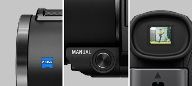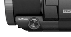 | 專業級功能包含手動轉環和手動按鈕,可用來控制各種可指派功能、電子觀景窗,以及時間代碼和使用者位元資料錄影。 |