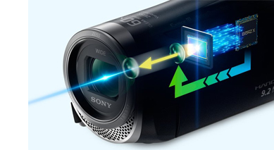 Sony 創新研發的「Exmor R」CMOS 感光元件,採用獨家背照式感測技術,將金屬配線改置於光電二極體下,藉此獲得最大的進光量,相較於傳統的 CMOS 感光元件,感光度已大幅提升 1 倍。 |