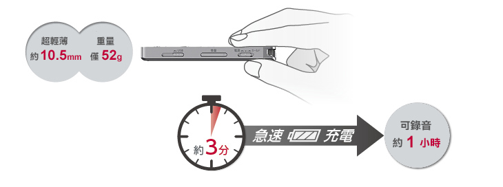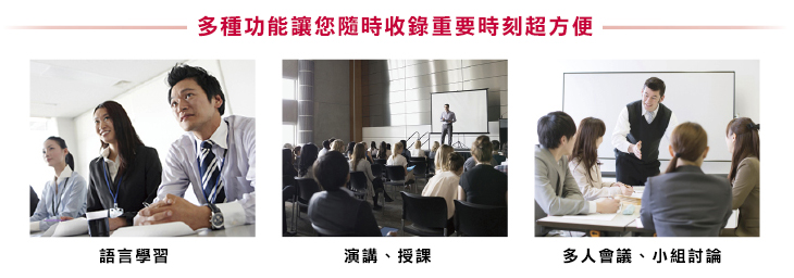 | 無論針對台上演講者的焦點錄音或小組討論的廣域錄音,都能達到清晰收音品質。繽紛 4 色外型搭配輕薄機身,結合直覺化操作介面、 3分鐘快充及長效電池續航力等多種功能,上課、會議、語言學習都能完美錄音,不錯失重要時刻! |