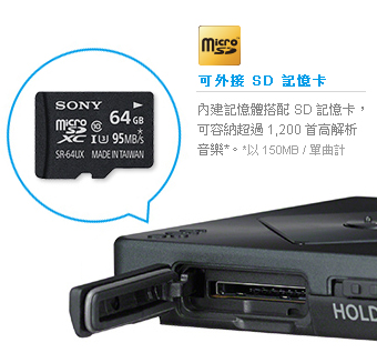 | 體積輕巧,加上外接記憶卡僅 192 公克,還可長時間播放。 |
