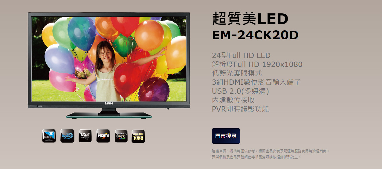 聲寶 SAMPO 24型 LED液晶顯示器+視訊盒EM-24CK20D