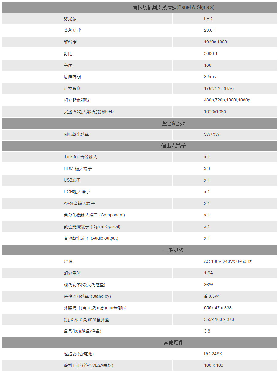24型Full HD LED