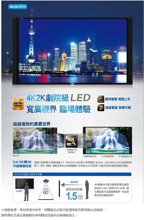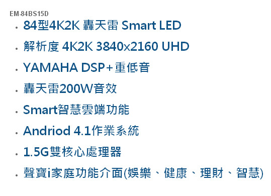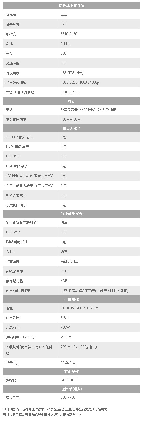 聲寶 SAMPO 84型 4KLED液晶顯示器+視訊盒EM-85BS15D