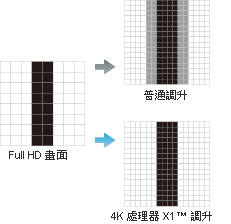 | 4K 超極真影像處理器 X1™ 採用全新研發的 2K-4K 畫質提升技術與 4K 影像數據資料庫,經由強大的超精湛畫質 (Super Resolution) 演算法,依據影像的偵測分析結果,分別將 2K 與 4K 畫面,提升至最細緻表現。 |
