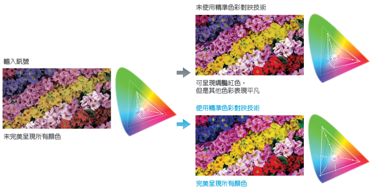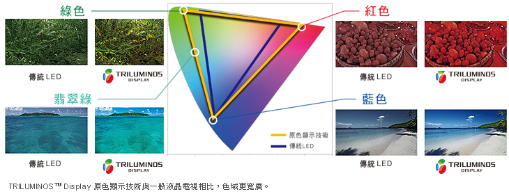 | 超廣色域 一一呈現更細緻的真實原色 |