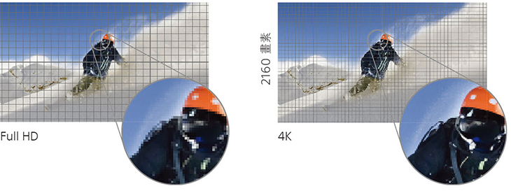 | 4K 影像具備 829 萬畫素的高影像解析度,細膩的畫質相當於 4 倍 FULL HD 規格,即使大尺寸螢幕也能呈現令人驚豔的細節、材質感、銳利度、甚至細微紋路都可清晰再現。 |